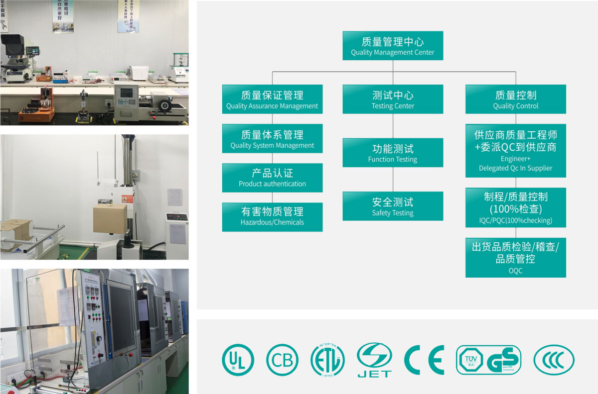 公司視產(chǎn)品質(zhì)量為企業(yè)生命,始終以“質(zhì)量第一、用戶至上”為宗旨,建立完善質(zhì)量管理體系,不斷提高全員質(zhì)量意識,嚴(yán)格按照國家質(zhì)量標(biāo)準(zhǔn)組織生產(chǎn),已經(jīng)引入了信息化質(zhì)量管理系統(tǒng)(QMS),從進料檢驗、首件檢驗、生產(chǎn)巡檢、出貨檢驗、質(zhì)量分析及改善、品質(zhì)追溯等均形成實時大數(shù)據(jù)和信息流。公司已經(jīng)通過了So9001、1SO14001、BSC等體系認(rèn)證,公司產(chǎn)品取得了JQA、JET、CC、UL、CB等產(chǎn)品認(rèn)證。