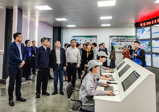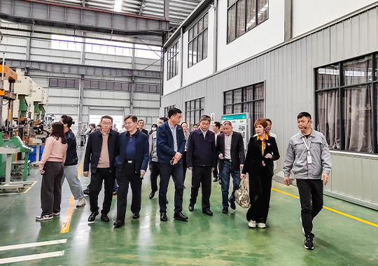 圖為邵陽市委書記嚴(yán)華陪同院士、專家一行蒞臨拓浦精工智能制造(邵陽)有限公司參觀調(diào)研指導(dǎo)工作。